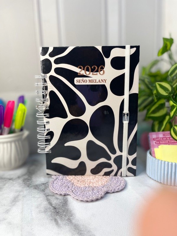 tapa dura /anillo metálico doble /elástico de cierre /dije decorativo