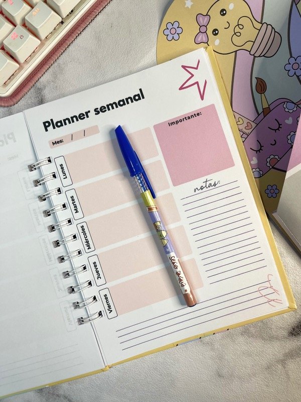 Planner semanal full color de 52 semanas (cubre un año) más frase en la primer hoja.